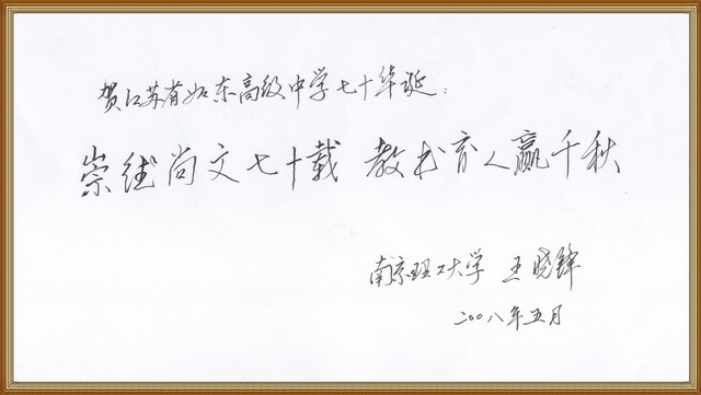 南京理工大宝威体育-(中国)科技公司长王晓锋教授为我校七十周年校庆题辞
